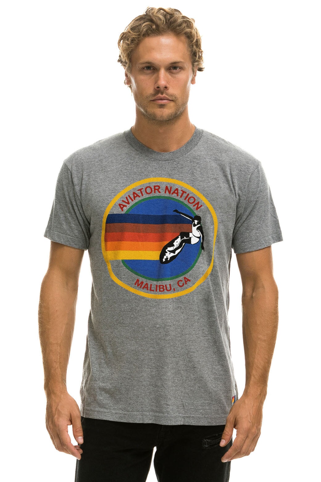 AVIATOR NATION MALIBU CREW TEE SHIRT - HEATHER GREY