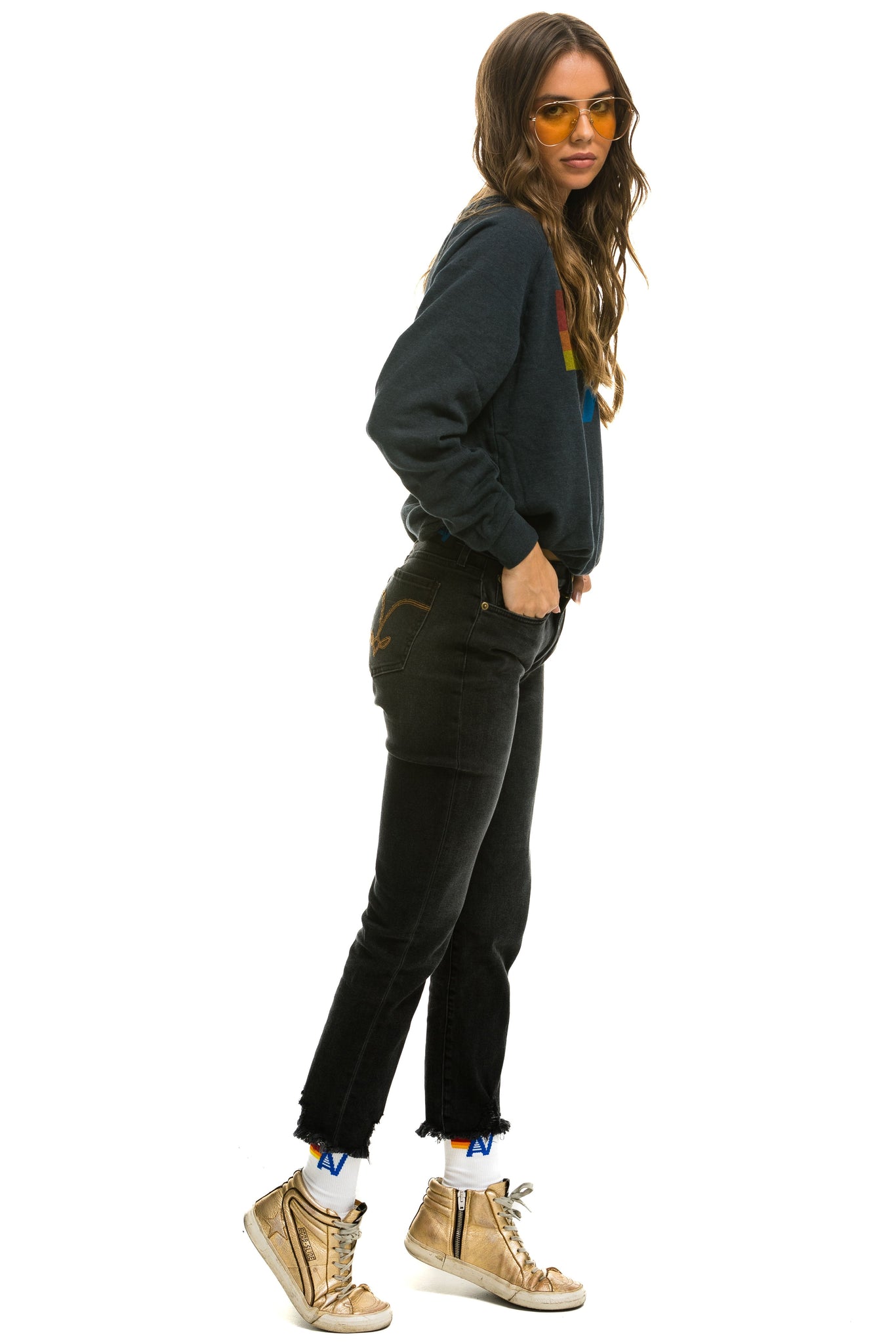 Tu nuevo básico de Aviator Nation. Un calcetín unisex clásico con nuestro logotipo retro y genial. Combínalo con tu conjunto favorito de Aviator Nation para lograr un estilo vintage completo y cómodo.