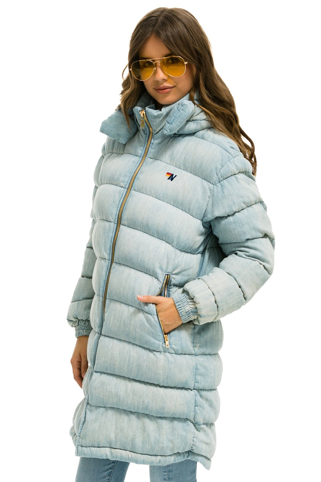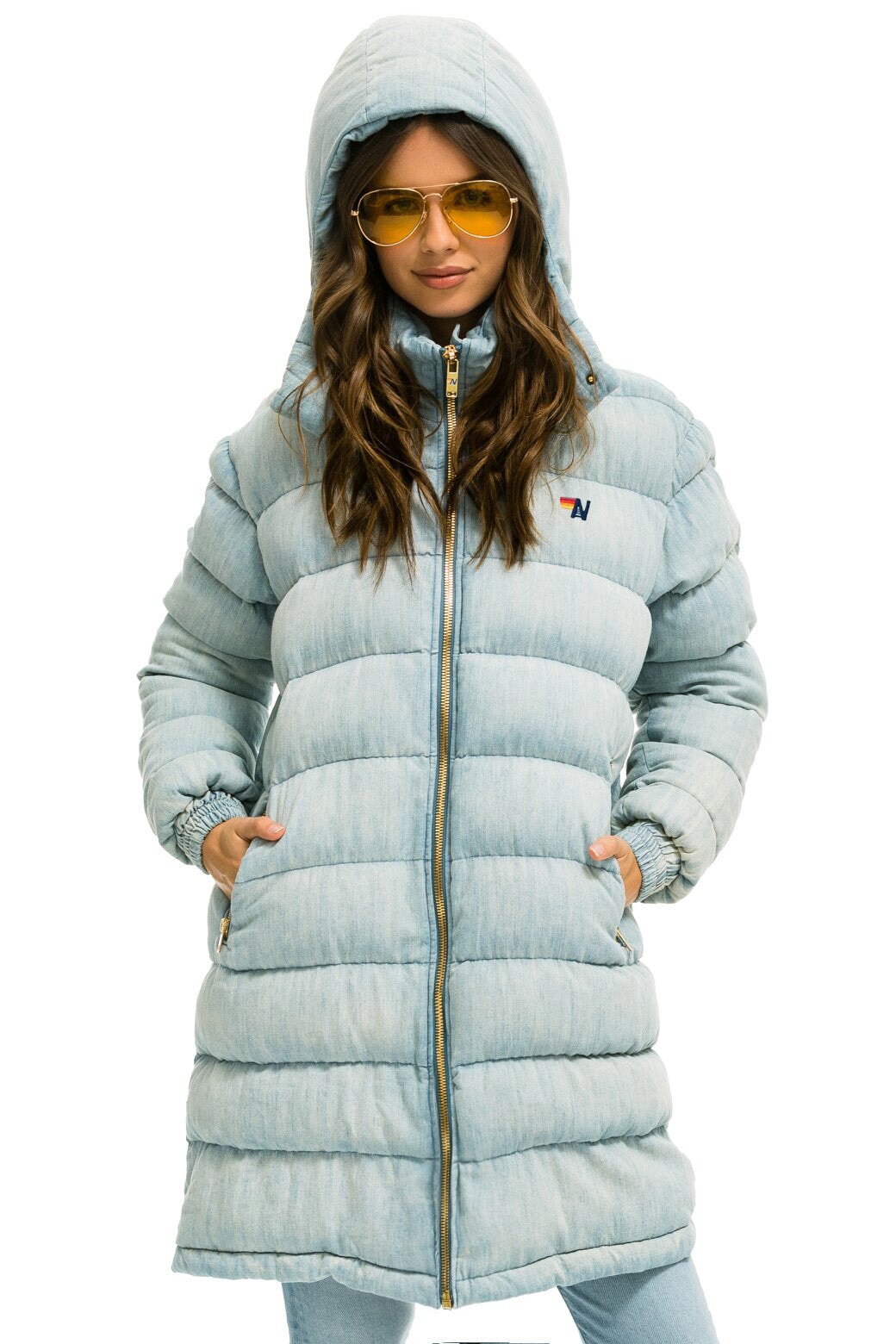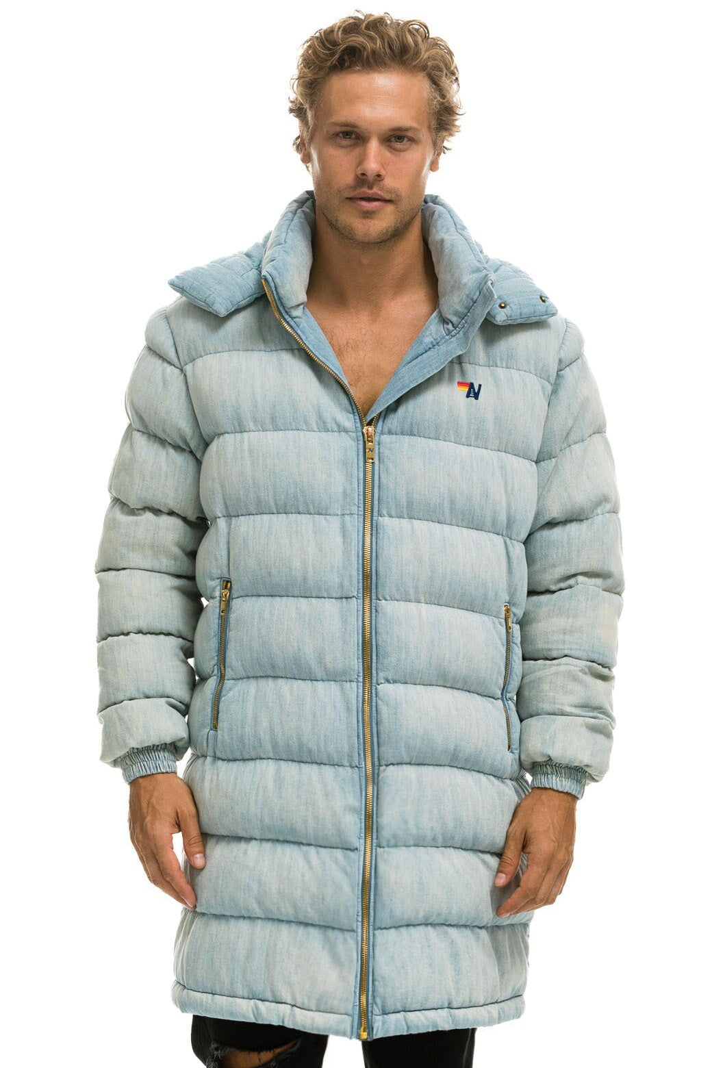 Standing out just got even easier. Our new denim puffers. This jacket will keep the compliments rolling in while keeping you warm. Filled with a lofty 400 gsm powerfill using our new downlike synthetic insulation to keep you warm, included inside the collar to go above and beyond. This insulated jacket was built for those perfect crisp mornings. We included a hidden interior phone pocket, extra deep hand pockets, and elastic cuffs to keep out the cold, because even with the simplest styles, we got you.