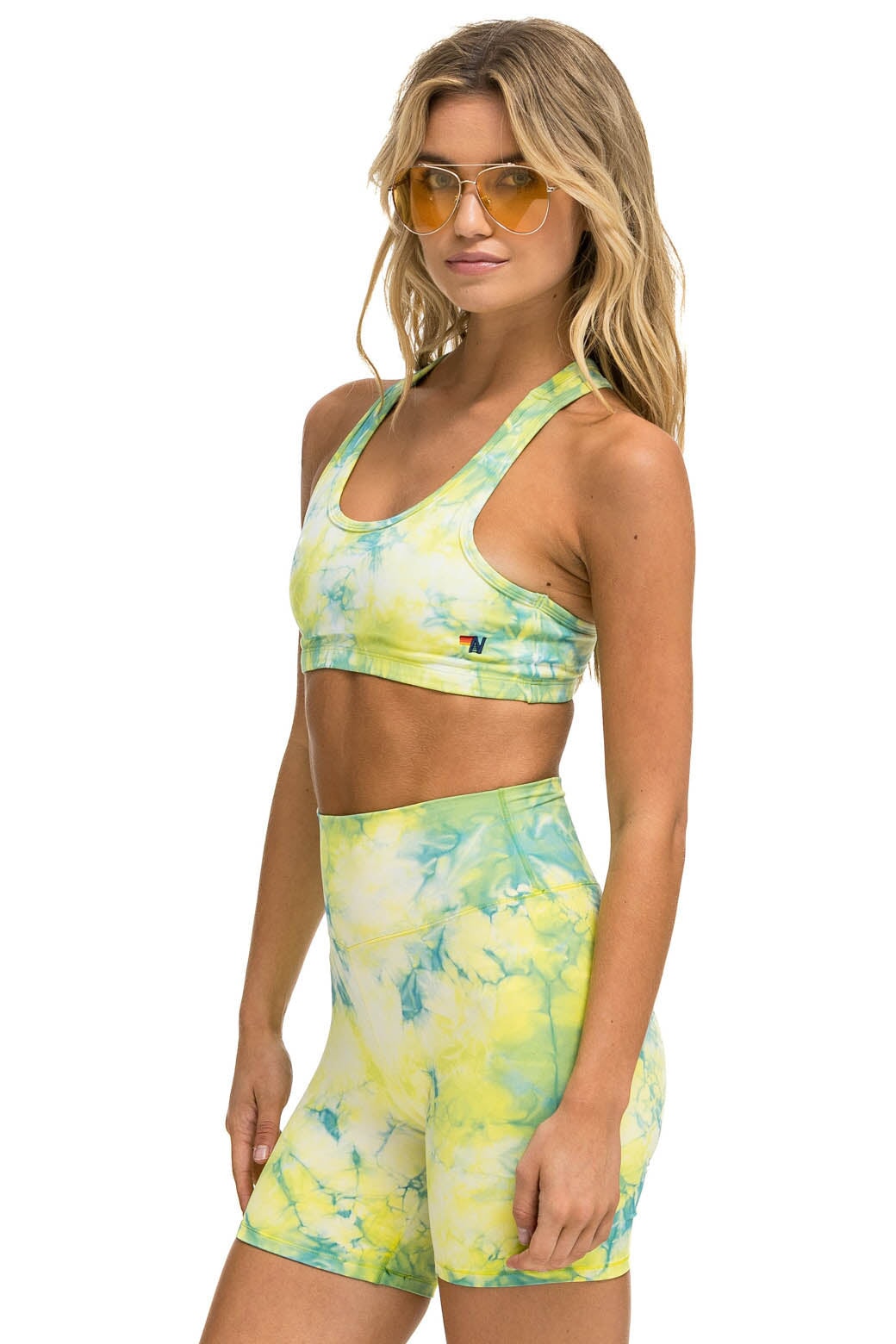 Shorts de ciclista de cintura alta de 6 polegadas tingido à mão - TIE DYE AMARELO NEON